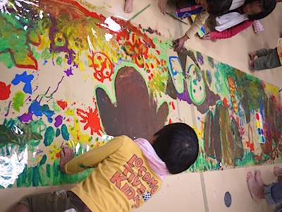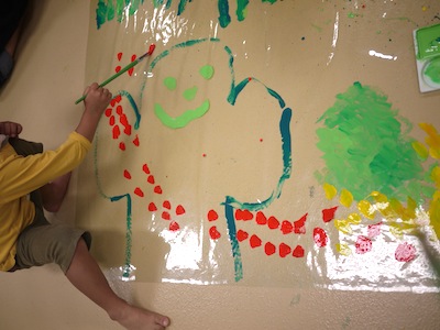 上の三枚の写真は先月10月28日のもの。透明なビニールの上に絵を描きます。