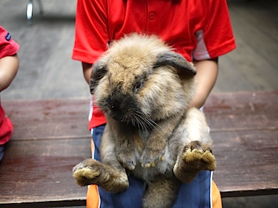 長男は前回来た時からハムスター(本当はモルモット)とウサギに夢中。